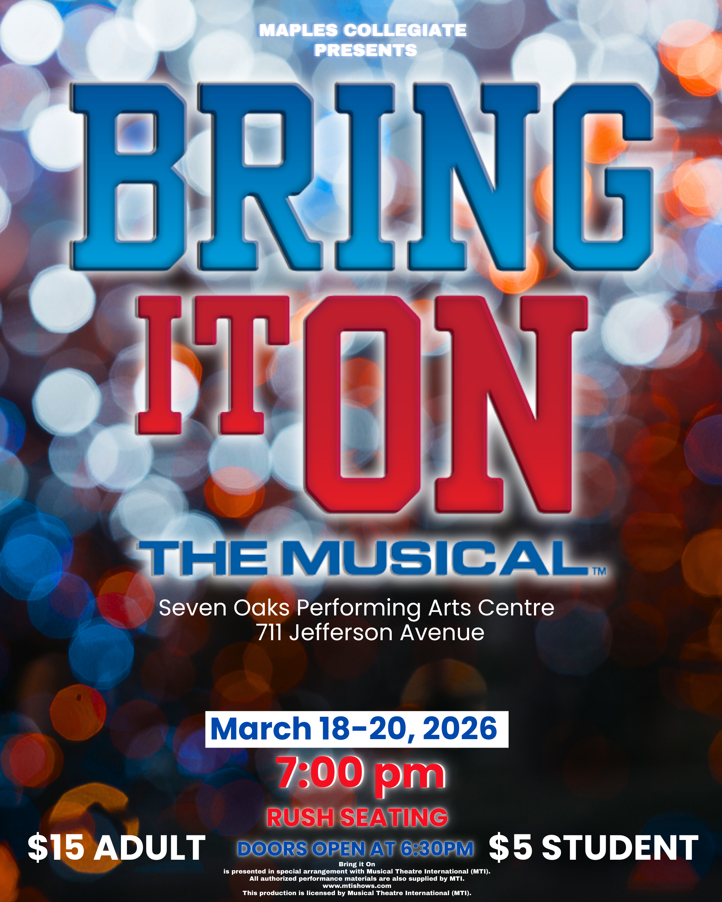 We are thrilled to extend a special invitation to attend Maples Collegiate's upcoming production of "Bring It On: The Musical." Join us for an electrifying celebration of music, talent, and athleticism as our students take center stage!