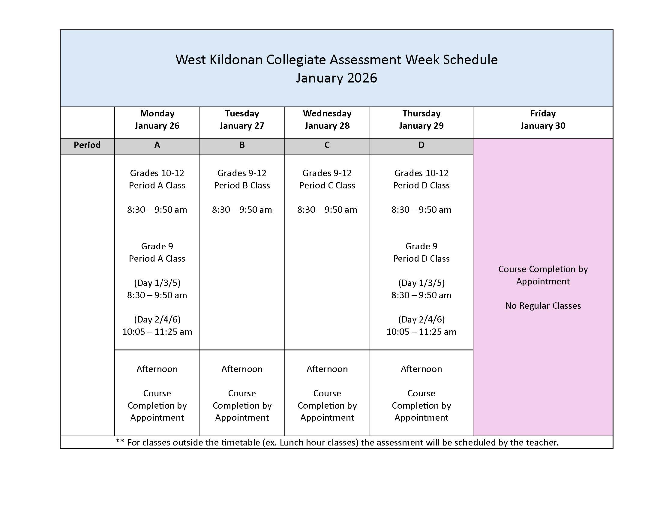 JANUARY 27, 2026 Final Assessments for all Period B classes All Day